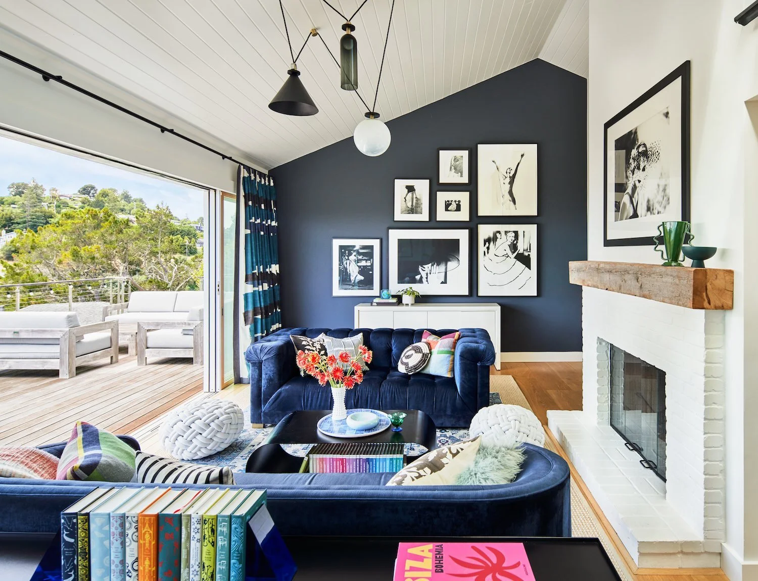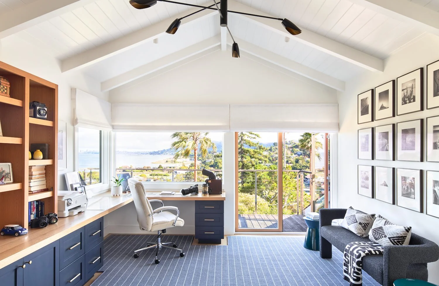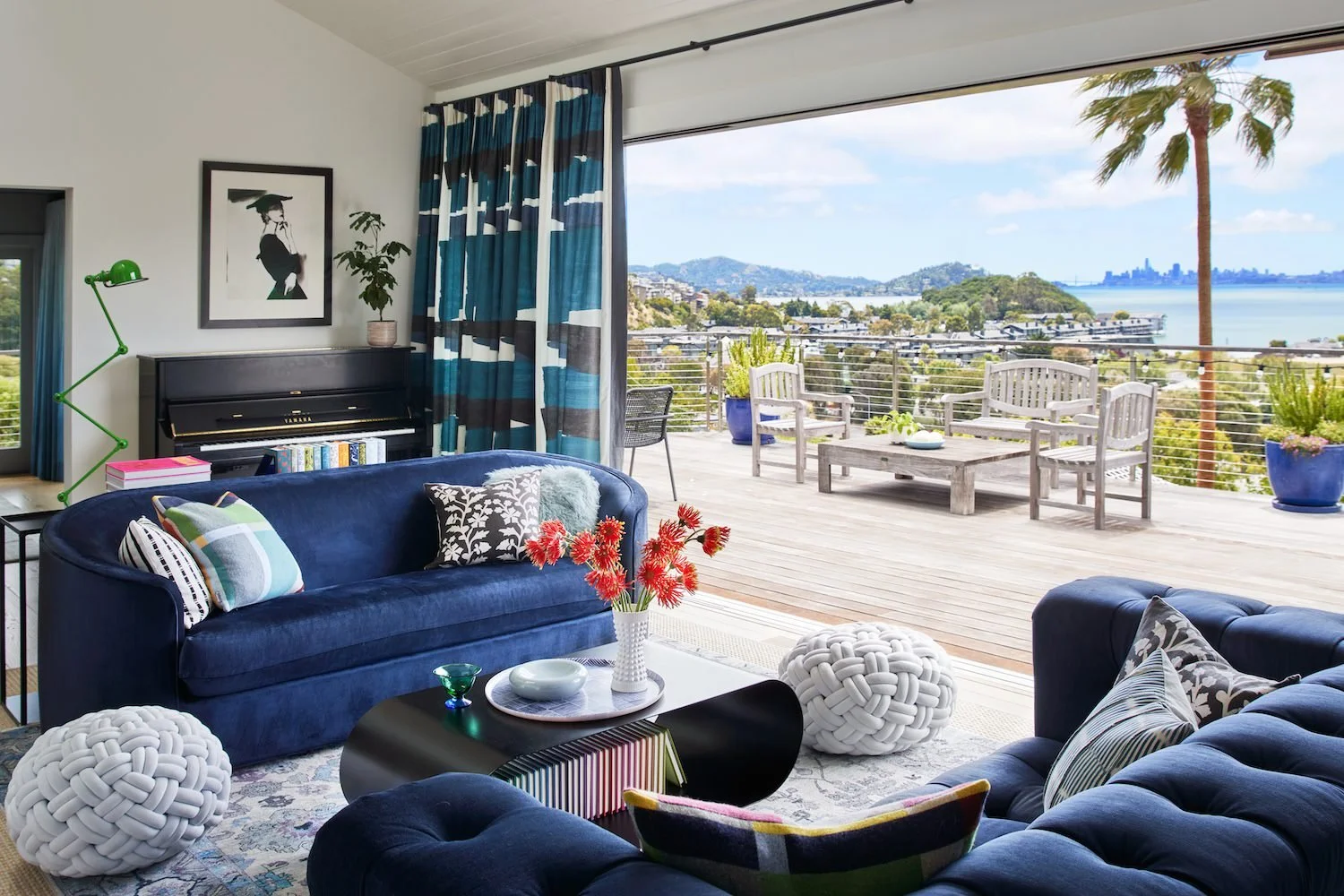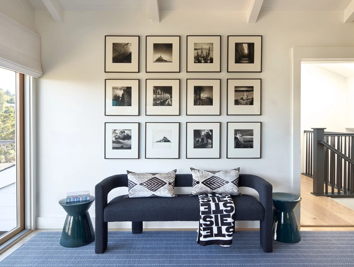 Before we embarked on the design of this family's Paris pied-a-terre, we completed the interior of their main house in Mill Valley, California. Sweeping views of the San Francisco Bay, layered with their exquisite collection of black & white photography, created a striking tension between the home's vibrant interior and inspired exterior. Clean-lined furnishings in classic shapes balance the elegance of their art, while color-blocked upholstery and wall finishes mirror the high contrast of the prints. The client’s personality and personal effects were present in each space, radiating a joyful and authentic feeling.