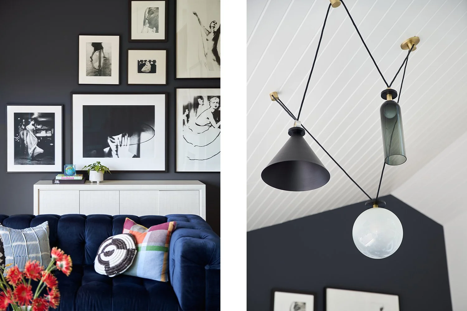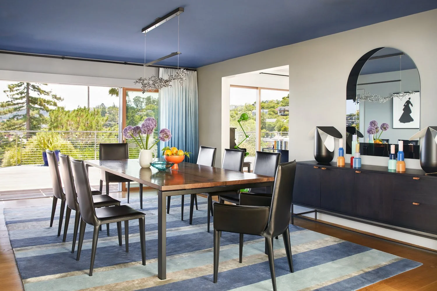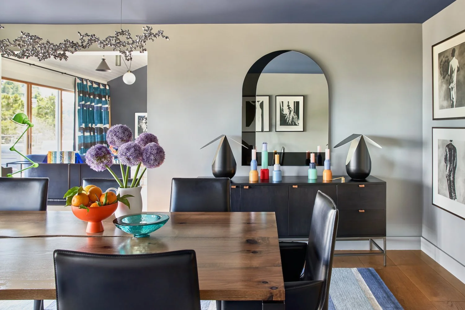 Before we embarked on the design of this family's Paris pied-a-terre, we completed the interior of their main house in Mill Valley, California. Sweeping views of the San Francisco Bay, layered with their exquisite collection of black & white photography, created a striking tension between the home's vibrant interior and inspired exterior. Clean-lined furnishings in classic shapes balance the elegance of their art, while color-blocked upholstery and wall finishes mirror the high contrast of the prints. The client’s personality and personal effects were present in each space, radiating a joyful and authentic feeling.