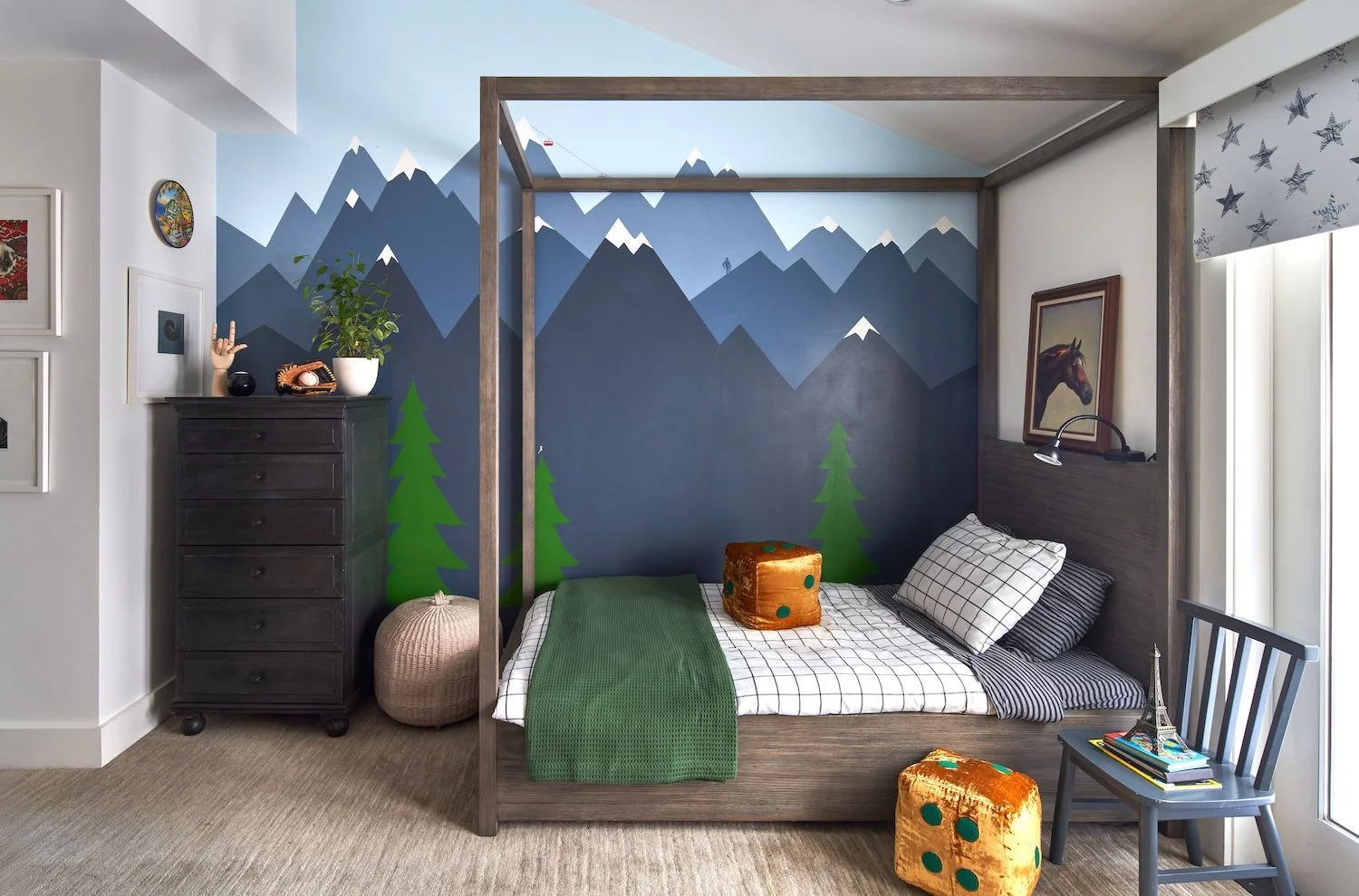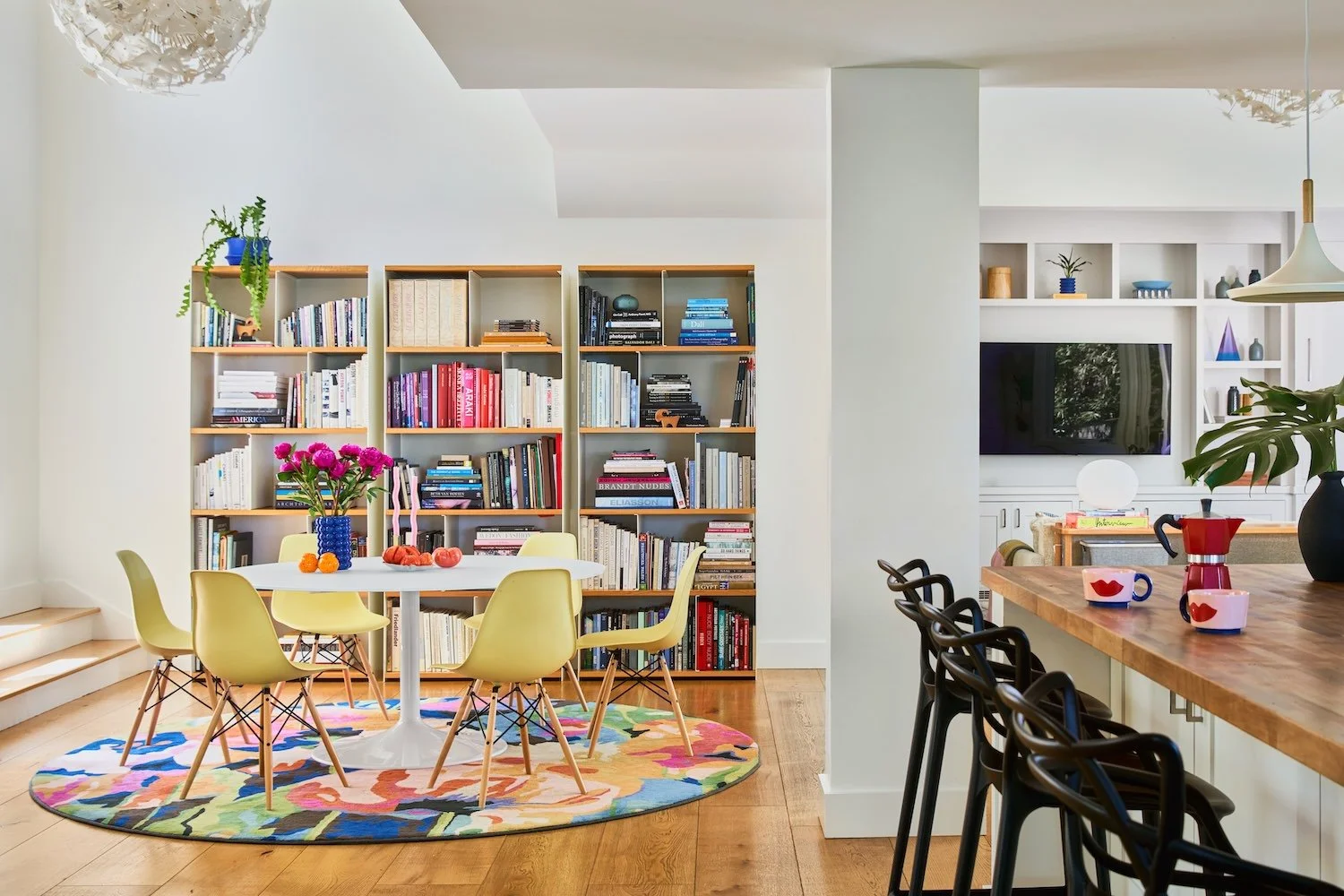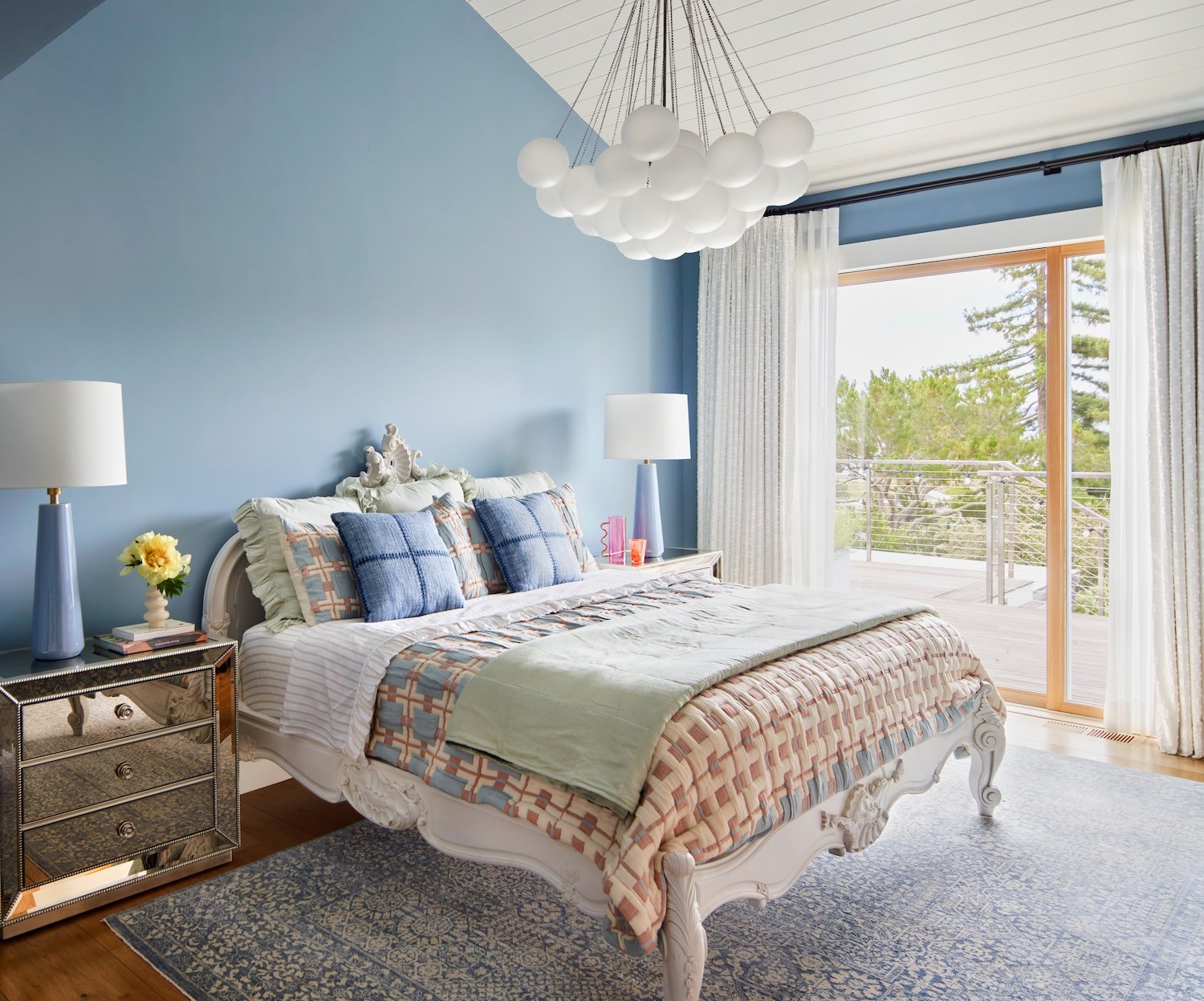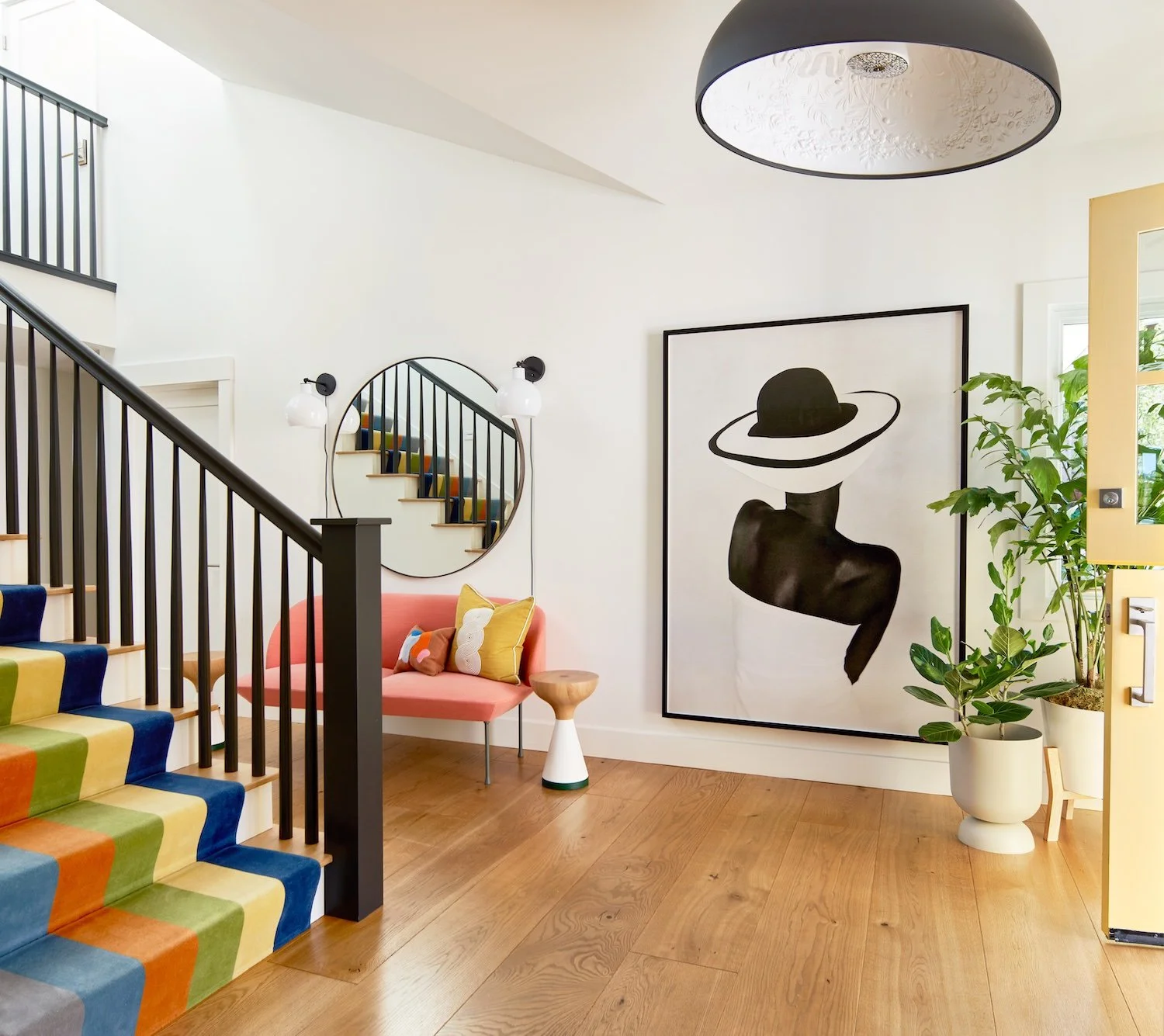 Before we embarked on the design of this family's Paris pied-a-terre, we completed the interior of their main house in Mill Valley, California. Sweeping views of the San Francisco Bay, layered with their exquisite collection of black & white photography, created a striking tension between the home's vibrant interior and inspired exterior. Clean-lined furnishings in classic shapes balance the elegance of their art, while color-blocked upholstery and wall finishes mirror the high contrast of the prints. The client’s personality and personal effects were present in each space, radiating a joyful and authentic feeling.