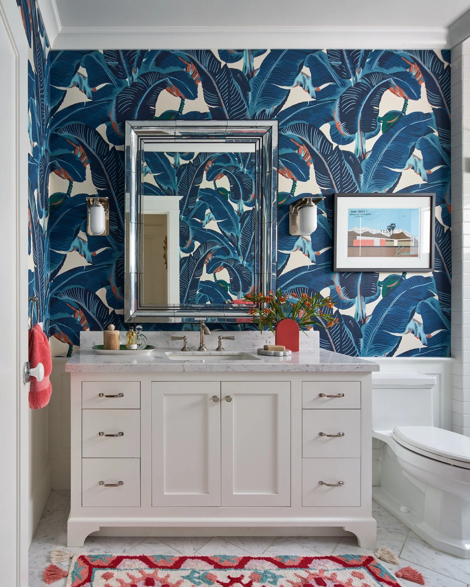 Our designs for this client’s vibrant, eclectic main house in San Francisco were the jumping off point for the aesthetic of this vacation home. Fanciful wallpapers, lively coloration, animal and marine themes, bold window treatment patterns and soft and comfortable upholstery items were all elements carried from one home to the next. This wine country retreat is the sweet, understated, little sister of the big city home: Aligned and in tune, while exuding new, fresh energy.